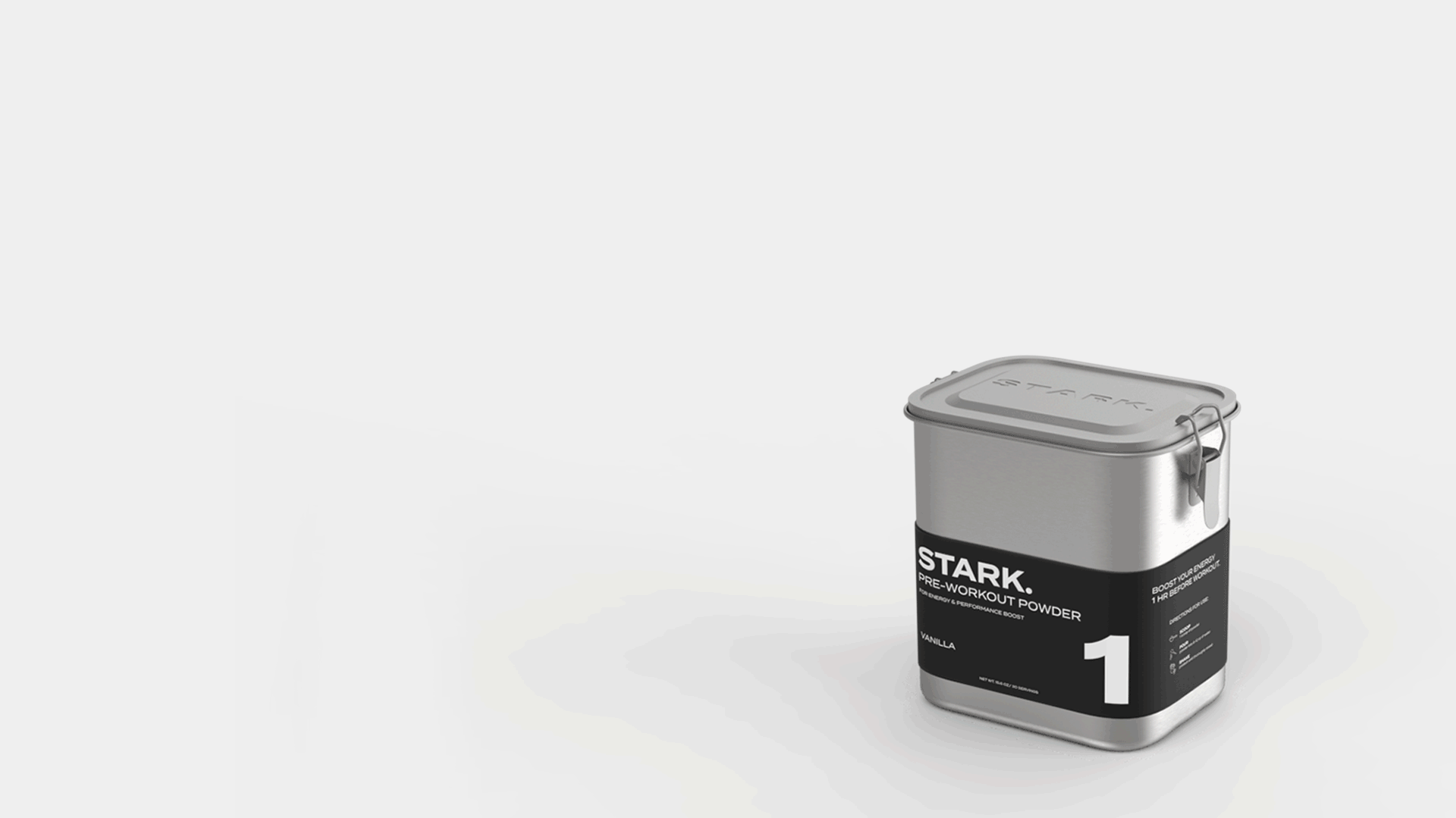 Introducing a sleek workout trio with substantial sustainability benefits. Stark provides a step-by-step supplement routine with easy to follow instructions. The steel canister is beautiful enough to leave out